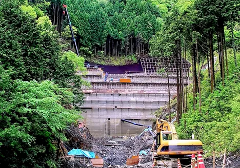 土砂災害を防ぐための堰堤や谷止工を施工し、下流域の安全を確保する工事です。