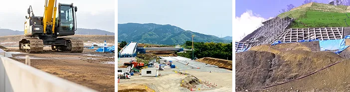 私たちは多岐にわたる分野で公共工事の施工を行い、社会基盤の構築に携わっております。